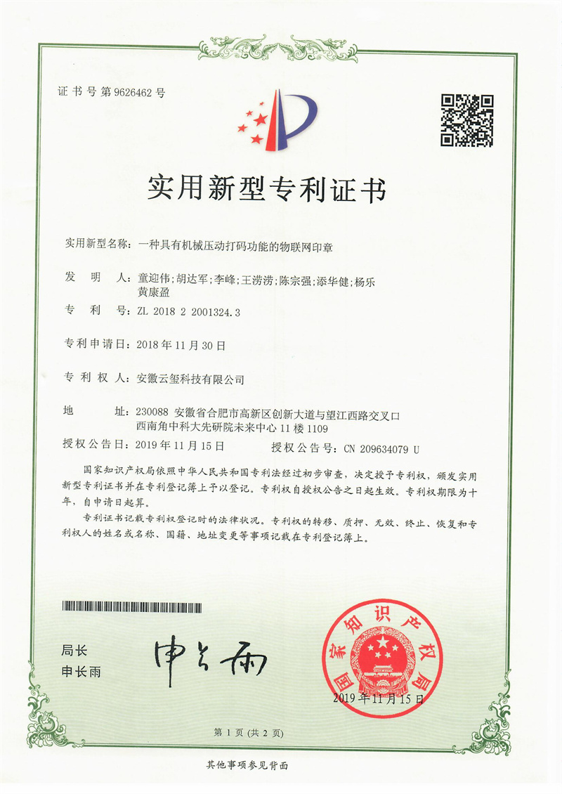 公司原創(chuàng)發(fā)明一體式智能印章技術(shù),引領(lǐng)國內(nèi)外新一代智能印簽創(chuàng)新變革。獲中日韓多項發(fā)明專利,徹底解決了實體印章和電子印簽管控的社會難題,獲國務(wù)院國資委全國央企熠星二等獎。公司聯(lián)合國家信息安全產(chǎn)品認證中心、公安部三所、信通院、中國印章協(xié)會等,主導起草了行業(yè)首個智能印章安全認證標準和智能印章產(chǎn)品標準,引領(lǐng)了智能印章行業(yè)發(fā)展。
